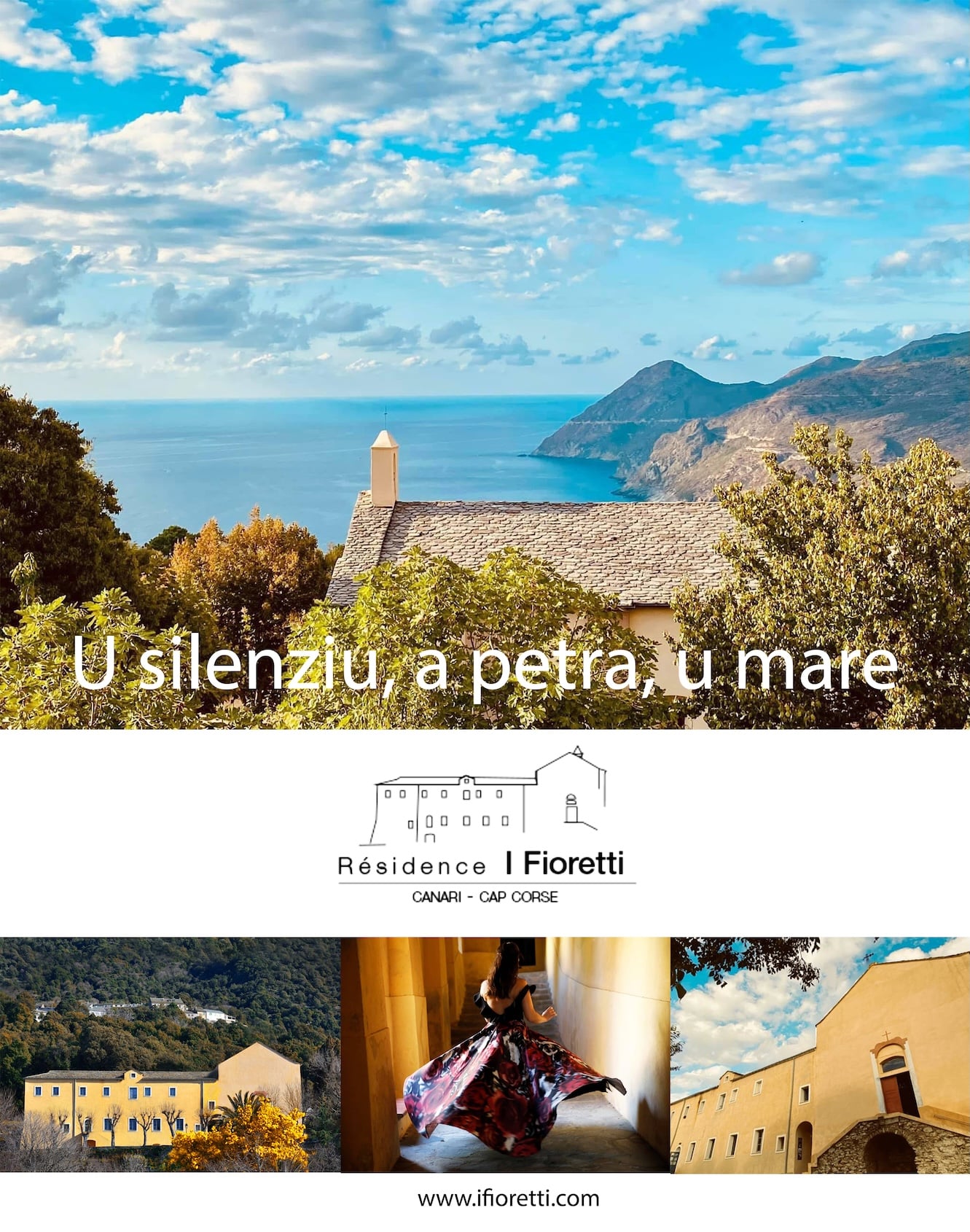 Au cœur d’un village du Cap Corse, I Fioretti veille en hauteur, adossée au bois, tournée vers la mer.